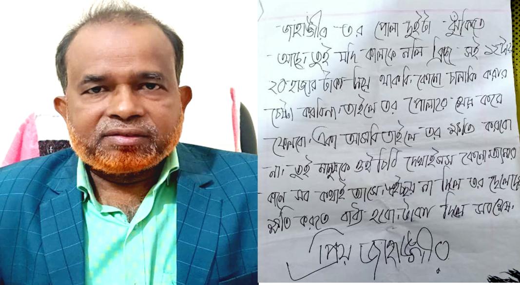 গাজীপুরের কালীগঞ্জে বেসরকারী হাসপাতালের ব্যবস্থাপক ও তার পরিবারকে চিরকুটের মাধ্যমে হত্যা, গুম, লুটপাট, চাঁদা দাবী ও সন্তানদের হত্যার হুমকি দেয়া হয়েছে। মো. জাহাঙ্গির প্রধান উপজেলার বাহাদুরশাদী ইউনিয়নের ধোলাসাধুখা (কুহিনুর মার্কেট) এলাকার মৃত ছোবাহানের পূত্র। তিনি উপজেলার একটি বেসরকারী হাসপাতালে ব্যবস্থাপক পদে চাকুরী করেন। চিরকুট ও অভিযোগ সূত্রে জানা যায়, গত ২৪ ডিসেম্বর রাতে কে বা কাহারা জাহাঙ্গিরের ঘরের দরজার সামনে চিরকুট ফেলে রেখে যায়। পরের দিন অর্থাৎ ২৫ তারিখ মঙ্গলবার সকালে ঘুম থেকে উঠে দরজার সামনে মাটিতে চিরকুটটি দেখতে পায়। চিরকুটের মাধ্যমে হুমকি দিলে জাহাঙ্গির বাদী হয়ে গত ২৫ ডিসেম্বর নিকটস্থ থানায় অজ্ঞাতনামা ব্যক্তিদের বিরুদ্ধে লিখিত অভিযোগ দায়ের করেন। ২৪ তারিখের প্রথম চিরকুটে “জাহাঙ্গির আজকে তুই শেষ” রাত ১২ টার সময় লুট করবো, আগে থেকেই সতর্ক করলাম, চালাকী করলে তুই শেষ। চিরকুটে এসবই লেখা ছিল। সরেজমিনে অনুসন্ধানে জানা যায়, পরিবারের সদস্যদের নিরাপত্তার কথা বিবেচনায় থানায় অভিযোগ দায়ের করলে গত ২৯ ও ৩০ ডিসেম্বর রাতে পূনরায় ঘরের সামনে আরোও দুটি চিরকুট রেখে যায়। তাতে হত্যা, গুম, লুটপাট, চাঁদা দাবী ও সন্তানদের মেরে ফেলার হুমকি প্রদান করা হয়েছে। এঘটনায় এলাকায় চাঞ্চল্যের সৃষ্টি হয়েছে। এবিষয়ে মো. জাহাঙ্গির প্রধান বলেন, পরের দুটি চিরকুটের কথা উল্লেখ করে বলেন, “তুই নাকি থানায় জিডি করছছ, কাজটা ভাল করলি না। আমরা কিন্তু তোর সব খবরই জানি। এখন কিন্তু তোরে কেউ বাচাতে পারবে না। বাপ পুত তিন জনকেই মারবো। তোর পুলা ২টা ঝুঁকিতে আছে। ২০ হাজার টাকা বক্তারপুর নলী ব্রীজের কাছে নিয়ে আসবি। কোন ধরনের চালাকি করলে তোর ছেলে দুইটার ক্ষতি করতে বাধ্য হবো। জাহাঙ্গির প্রধানের স্ত্রী লিজা আক্তার নিপা বলেন, চিরকুটের মাধ্যমে হুমকি দেয়ায় স্বামী-সন্তাদের নিয়ে জীবনের নিরাপত্তাহীনতায় ভুগছি। বাচ্চারা ঘরের বাইরে যেতে ভয় পাচ্ছে এবং তাদের লেখাপড়ার ব্যাঘাত ঘটছে। তাহারা স্কুল ও মাদ্রাসায় যেতে এবং খেলাধোলা করতে ভয় পাচ্ছে। বাহাদুরশাদী ইউনিয়নের চেয়ারম্যান মো. শাহাবুদ্দিন আহমেদ প্রতিবেদককে মুঠোফোনে বলেন, জাহাঙ্গির অত্যন্ত ভাল ছেলে। যারাই এধরণের অপকর্মের সাথে জরিত তাদেরকে আইনের আওতায় এনে শাস্তির ব্যবস্থা করার দাবী জানাচ্ছি। অভিযোগের প্রেক্ষিতে কালীগঞ্জ থানার উপপরিদর্শক মাসুদ রানা শামীম সঙ্গীয় ফোর্স নিয়ে ৩১ ডিসেম্বর বুধবার সন্ধায় বাদীর বাড়ি ও কুহিনুর মার্কেট এলাকা পরিদর্শন করেন। এসময় তিনি স্থানীয়দেরকে চিরকুটের বিষয়ে জিঙ্গাসাবাদ করেন এবং বিভিন্ন জনের হাতের লেখা সংগ্রহ করে চিরকুটের সাথে মিলিয়ে দেখেন। তখন স্থানীয় গণমাধ্