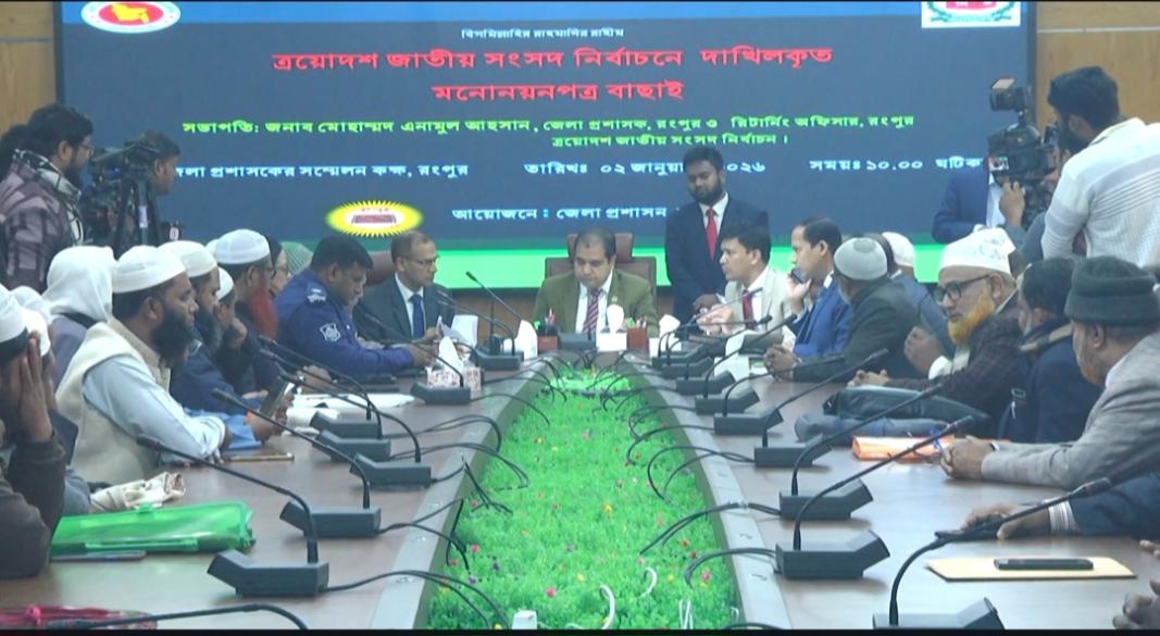 এর আগে বৃহস্পতিবার (১ জানুয়ারি) রংপুর-১ ও ২ আসনের মনোনয়ন যাচাই করা হয়, যেখানে রংপুর-১ আসনে জাতীয় পার্টির প্রার্থী মঞ্জুম আলীর মনোনয়ন বাতিল হয়।