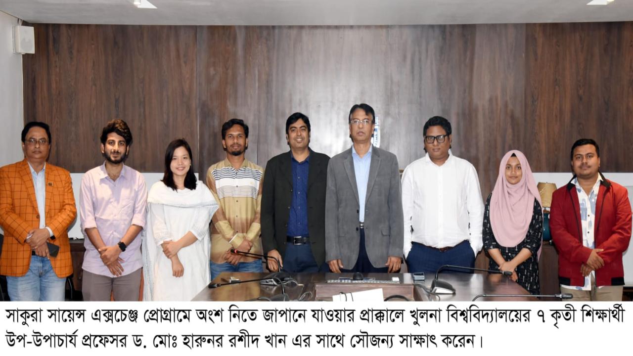 খুলনা বিশ্ববিদ্যালয়ের সাত শিক্ষার্থী জাপানে সাকুরা সায়েন্স এক্সচেঞ্জ প্রোগ্রামে অংশ নিতে যাচ্ছেন। জাপান সায়েন্স অ্যান্ড টেকনোলজি এজেন্সি (জেএসটি)-এর সহায়তায় এবং খুলনা বিশ্ববিদ্যালয় ও ইউনিভার্সিটি অব ইয়ামানাশির মধ্যে স্বাক্ষরিত সমঝোতা স্মারক (এমওইউ)-এর আওতায় এই প্রোগ্রাম বাস্তবায়িত হচ্ছে।