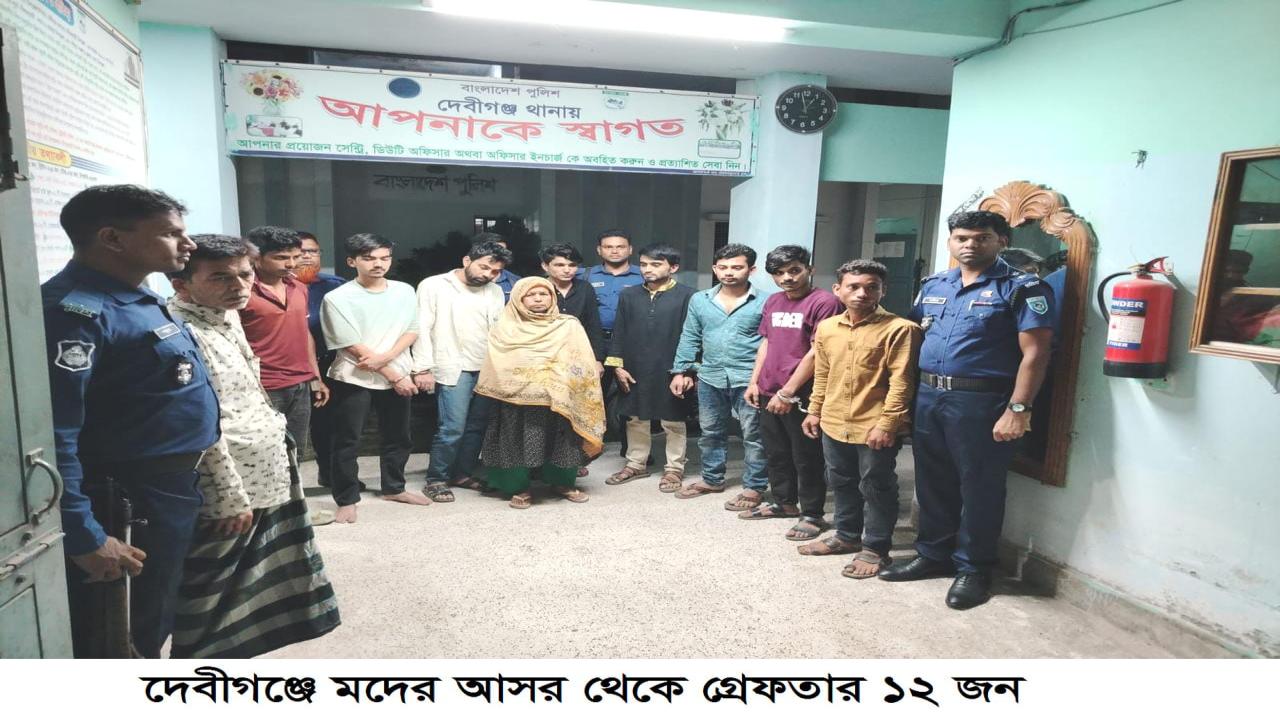 পঞ্চগড়ের দেবীগঞ্জে মাদকবিরোধী অভিযানে মা, ছেলে ও নাতিসহ ১৩ জনকে গ্রেফতার করেছে পুলিশ। শনিবার (৪ এপ্রিল) রাতে দেবীগঞ্জ থানার পুলিশ ওসি সেলিম মালিকের নেতৃত্বে অভিযানে অংশ নেন। পরে উপজেলা নির্বাহী কর্মকর্তা ও নির্বাহী ম্যাজিস্ট্রেট সবুজ কুমার বসাক ভ্রাম্যমাণ আদালত পরিচালনা করে।