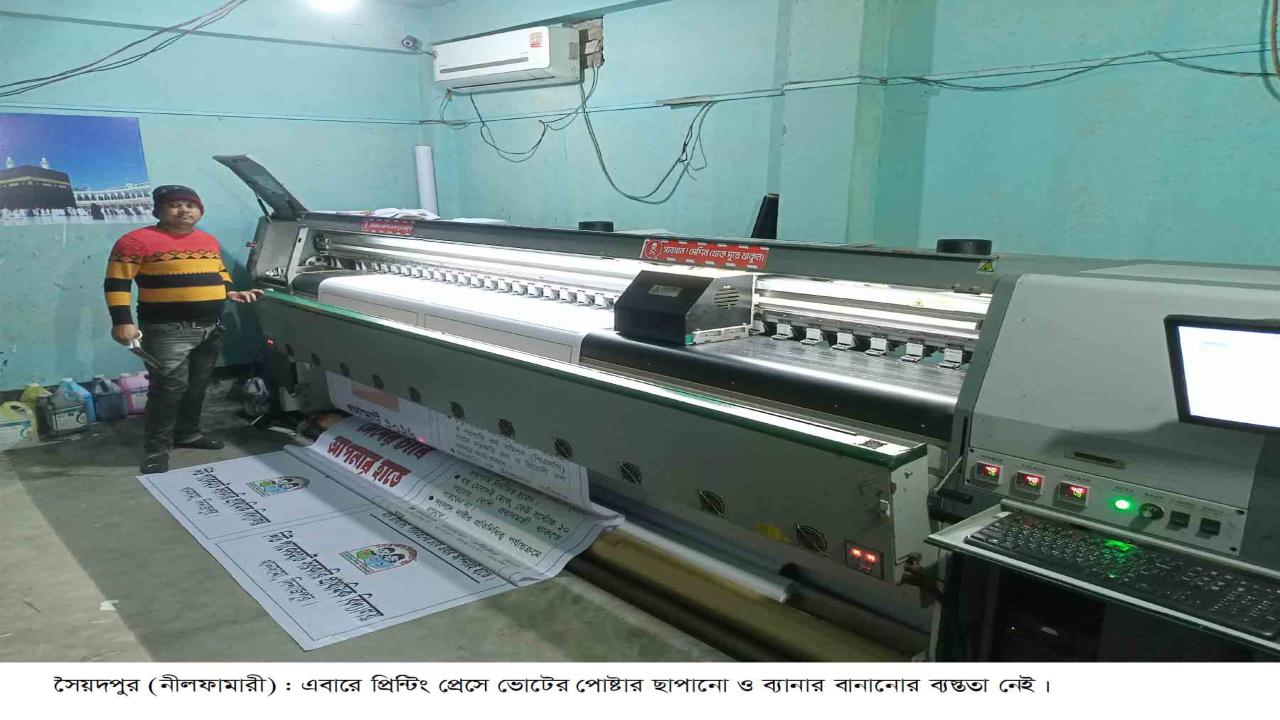 আনন্দ প্রেসের মালিক আরমান হোসেন বলেন, সৈয়দপুরে প্রায় ১৪টি উন্নতমানের ছাপাখানা রয়েছে, যা নীলফামারী ও আশপাশের জেলাগুলোর চাহিদা মেটায়। জাতীয় নির্বাচনকে কেন্দ্র করে বড় অর্ডারের আশা থাকলেও পোস্টার নিষিদ্ধের সিদ্ধান্তে সব প্রেস মালিকই ক্ষতির মুখে পড়েছেন।