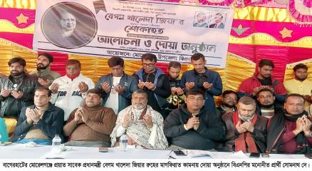 প্রয়াত সাবেক প্রধানমন্ত্রী ও বিএনপি চেয়ারপারসন বেগম খালেদা জিয়ার পৈত্রিক নিবাস ফেনীর ফুলগাজী উপজেলার শ্রীপুর মজুমদার বাড়িতে কুলখানি ও দোয়া মাহফিল অনুষ্ঠিত হয়েছে। ফেনী-১ (পরশুরাম-ফুলগাজী-ছাগলনাইয়া) আসনের বিএনপি মনোনীত সংসদ সদস্য প্রার্থী রফিকুল আলম মজনুর উদ্যোগে এ অনুষ্ঠানের আয়োজন করা হয়। দোয়া মাহফিলে প্রধান অতিথি হিসেবে উপস্থিত ছিলেন বিএনপির ভাইস চেয়ারম্যান আবদুল আউয়াল মিন্টু। বিশেষ অতিথি ছিলেন বিএনপি চেয়ারপার্সনের উপদেষ্টা অধ্যাপক জয়নাল আবেদীন। অনুষ্ঠানে বেগম খালেদা জিয়ার রুহের মাগফিরাত কামনা করে বিশেষ মোনাজাত করা হয়। পাশাপাশি দেশ ও জাতির শান্তি, সমৃদ্ধি ও কল্যাণ কামনা করা হয়। এ সময় বিএনপি ও অঙ্গসংগঠনের নেতাকর্মীসহ স্থানীয় গণ্যমান্য ব্যক্তিবর্গ উপস্থিত ছিলেন।