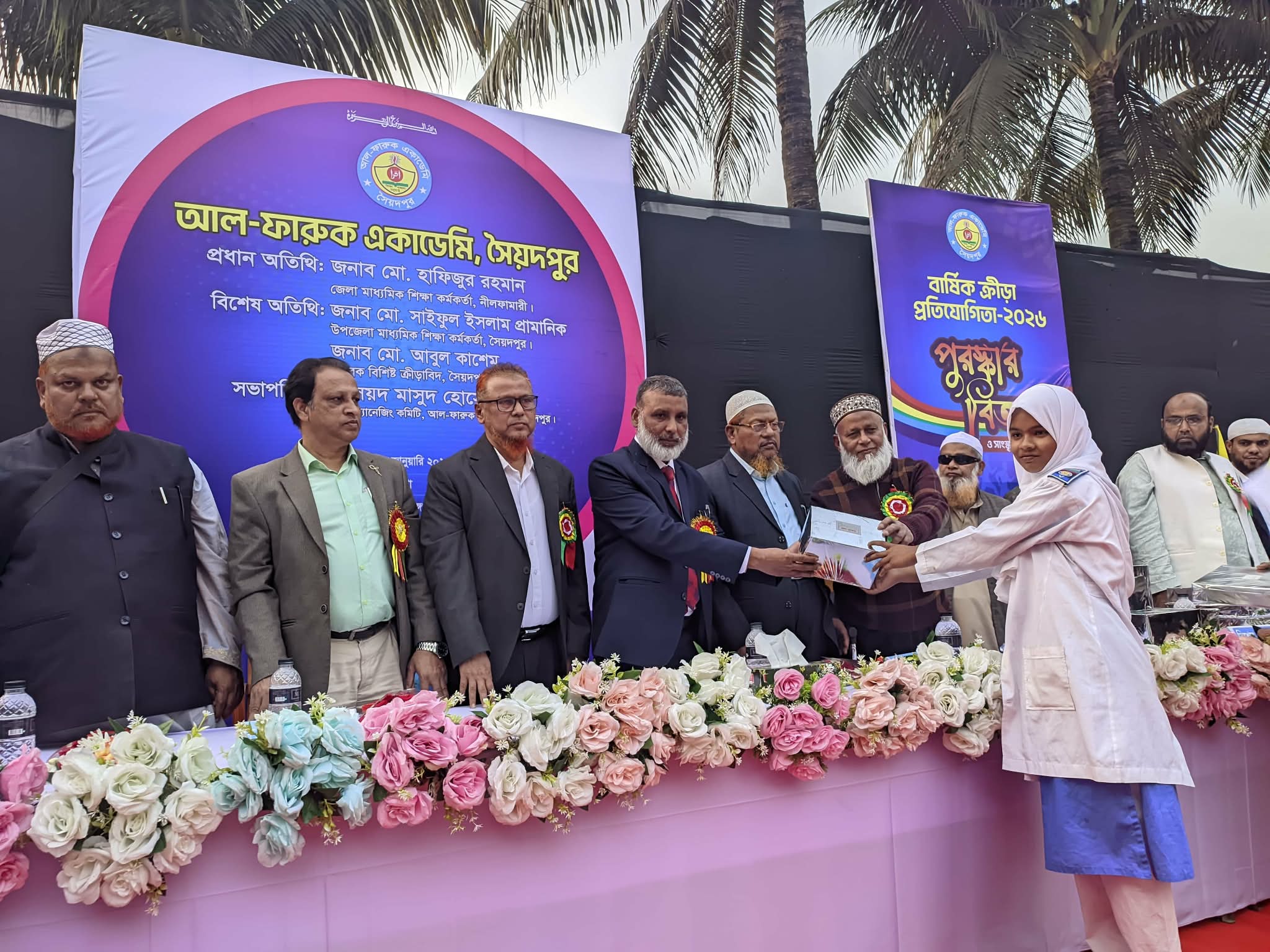 নীলফামারী সৈয়দপুরের আল-ফারুক একাডেমিতে বৃহস্পতিবার (২৯ জানুয়ারি) বার্ষিক ক্রীড়া প্রতিযোগিতার পুরস্কার বিতরণ ও সাংস্কৃতিক অনুষ্ঠান অনুষ্ঠিত হয়।