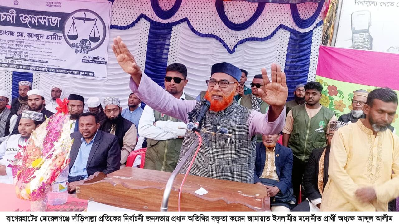 বাগেরহাটের মোরেলগঞ্জে জামায়াত ইসলামীর মনোনীত প্রার্থী অধ্যক্ষ আব্দুল আলীম বলেছেন, মোরেলগঞ্জ-শরণখোলা উপজেলার সকল সম্প্রদায়ের মানুষ নিরাপদে থাকবে। তিনি আশ্বাস দেন, অবহেলিত এলাকার উন্নয়নে পানগুছি নদীর পূর্ব পাড়ের ১০টি ইউনিয়নে প্রস্তাবিত সেলিমাবাদ থানার বাস্তবায়ন করা হবে।