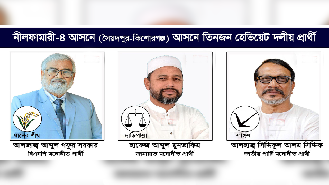 নীলফামারী-৪ আসনটি কিশোরগঞ্জের ৯টি ইউনিয়ন এবং সৈয়দপুরের ১টি পৌরসভা ও ৫টি ইউনিয়ন নিয়ে গঠিত। এই আসনে মোট ৯ জন প্রার্থী মনোনয়ন পেয়ে প্রতীক নিয়ে ভোটের মাঠে রয়েছেন। এর মধ্যে বিএনপি ধানের শীষে অধ্যক্ষ আব্দুল গফুর সরকার, জামায়াত দাঁড়িপাল্লায় হাফেজ আব্দুল মুনতাকিম, জাতীয় পার্টি লাঙলে সিদ্দিকুল আলম প্রার্থী। এছাড়া হাতপাখা, ফুটবল, মোটরসাইকেল, ঘোড়া, কাঁচি, কাঁঠাল প্রতীকের প্রার্থীরাও প্রতিদ্বন্দ্বিতা করছেন।