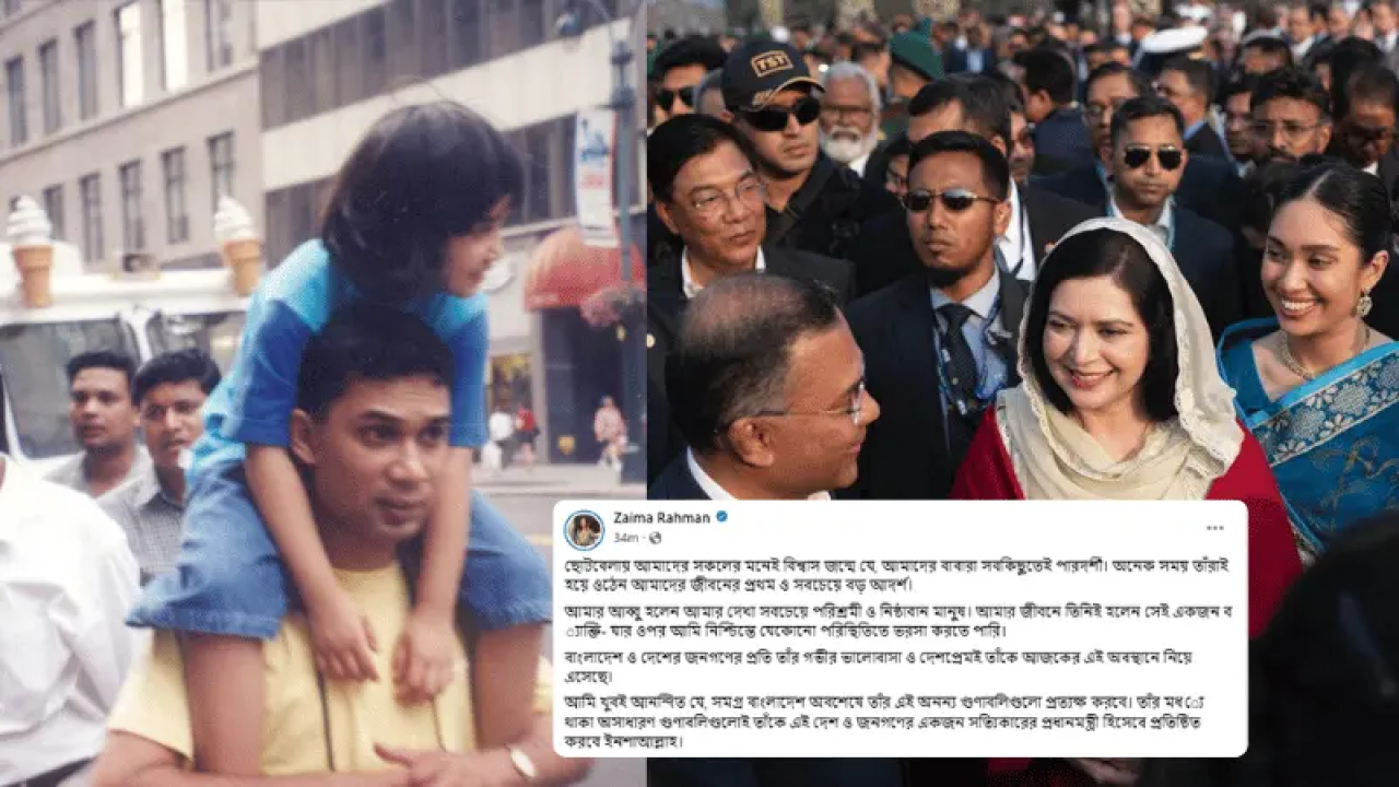 বাবা তারেক রহমানকে নিয়ে সোশ্যাল মিডিয়ায় আবেগঘন স্ট্যাটাস দিয়েছেন মেয়ে জাইমা রহমান। তিনি লিখেছেন, আমার আব্বু হলেন আমার দেখা সবচেয়ে পরিশ্রমী ও নিষ্ঠাবান মানুষ। শুক্রবার (২০ ফেব্রুয়ারি) নিজের ভেরিফায়েড ফেসবুকে তিনি এ কথা লেখেন। ছোটোবেলায় আমাদের সকলের মনেই বিশ্বাস জন্মে যে, আমাদের বাবারা সবকিছুতেই পারদর্শী। অনেক সময় তাঁরাই হয়ে ওঠেন আমাদের জীবনের প্রথম ও সবচেয়ে বড় আদর্শ।