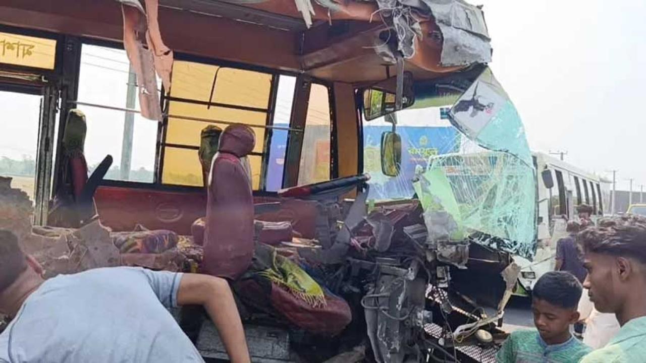 পুলিশ ও স্থানীয় সূত্রে জানা যায়, সড়কের পাশে খড় পোড়ানোর ফলে সৃষ্ট ঘন ধোঁয়ায় পুরো এলাকা ঢেকে যায়, ফলে যানবাহনের দৃশ্যমানতা মারাত্মকভাবে বিঘ্নিত হয়। এ অবস্থায় ঈগল পরিবহনের দুটি যাত্রীবাহী বাসের মধ্যে মুখোমুখি সংঘর্ষ ঘটে। একই সময়ে মারসা পরিবহনের একটি বাস নিয়ন্ত্রণ হারিয়ে সড়কের পাশের পিলারের সঙ্গে ধাক্কা খেয়ে ক্ষতিগ্রস্ত হয়।