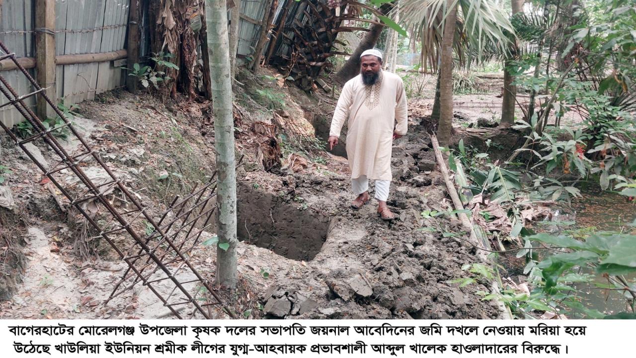 বাগেরহাটের মোরেলগঞ্জ উপজেলার খাউলিয়া ইউনিয়নে জমি দখলকে কেন্দ্র করে উপজেলা কৃষক দলের সভাপতি জয়নাল আবেদিন ও ইউনিয়ন শ্রমিক লীগের যুগ্ম আহ্বায়ক আব্দুল খালেক হাওলাদার-এর মধ্যে উত্তেজনা বিরাজ করছে।