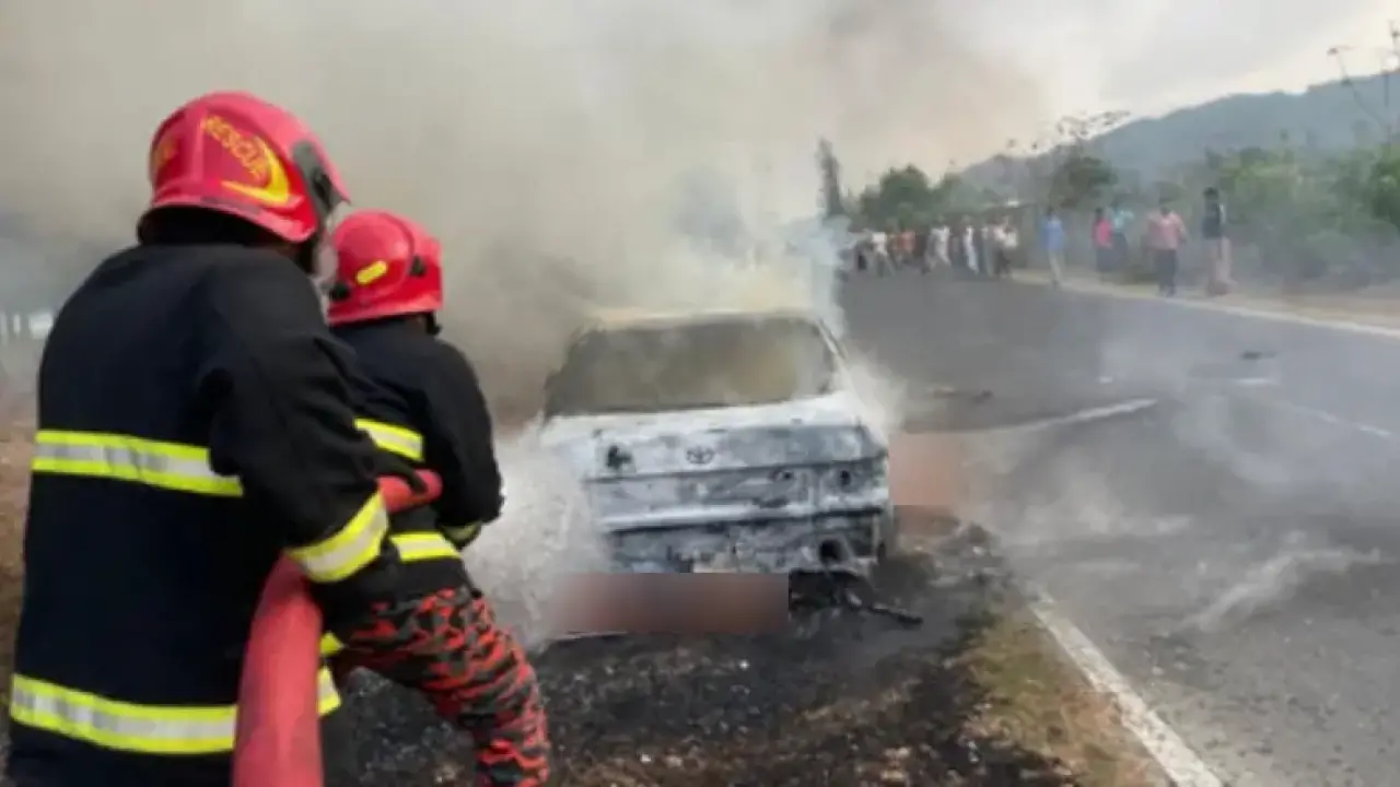 পরবর্তীতে গাড়িতে থাকা গ্যাস সিলিন্ডারে আগুন ছড়িয়ে পড়লে তা বিস্ফোরিত হয়ে যানটি সম্পূর্ণভাবে দাউদাউ করে জ্বলে ওঠে।