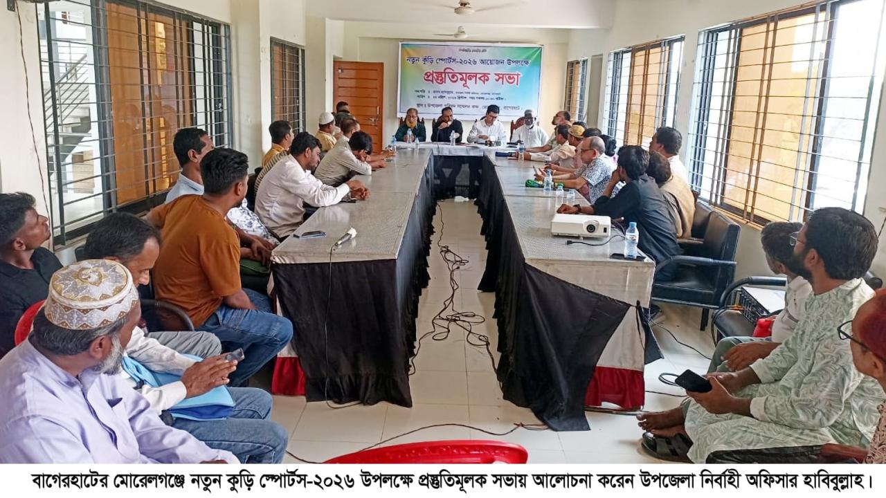 বাগেরহাটের মোরেলগঞ্জে “নতুন কুড়ি স্পোর্টস ২০২৬” আয়োজনের প্রস্তুতিমূলক সভা অনুষ্ঠিত হয়েছে।