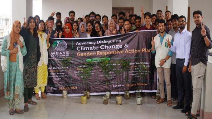 রংপুরে “জলবায়ু পরিবর্তন ও জেন্ডার সংবেদনশীল কর্মপরিকল্পনা” বিষয়ে দিনব্যাপী অ্যাডভোকেসি ডায়ালগ অনুষ্ঠিত হয়েছে। বৃহস্পতিবার (৩০ এপ্রিল) রংপুর বিভাগীয় সমাজসেবা কার্যালয়ে এ আয়োজন করে নারী ক্ষমতায়ন ও পরিবেশবাদী সংগঠন ইউভ বাংলাদেশ। অনুষ্ঠানে প্রধান অতিথি ছিলেন সমাজসেবা অধিদপ্তরের রংপুর বিভাগীয় পরিচালক জিলুফা সুলতানা। বিশেষ অতিথি হিসেবে পরিবেশ অধিদপ্তরের পরিচালক নুর আলম এবং সমাজসেবা ও পরিবেশ অধিদপ্তরের ঊর্ধ্বতন কর্মকর্তারা উপস্থিত ছিলেন। ডায়ালগে বিভিন্ন কলেজ ও বিশ্ববিদ্যালয়ের শিক্ষার্থী এবং ইয়ুথ লিড সংগঠনের প্রতিনিধিরা অংশ নেন। আলোচনায় রংপুর অঞ্চলে জলবায়ু পরিবর্তনের প্রভাব, বিশেষ করে নারী ও প্রান্তিক জনগোষ্ঠীর ওপর এর ক্ষতিকর প্রভাব তুলে ধরা হয়। একই সঙ্গে জেন্ডার সংবেদনশীল কর্মপরিকল্পনার প্রয়োজনীয়তার ওপর গুরুত্বারোপ করা হয়। ইউভ বাংলাদেশ ইয়ুথ কমিটমেন্ট বোর্ডের মাধ্যমে যুব প্রতিনিধিরা জলবায়ু ও জেন্ডার ন্যায্যতার অঙ্গীকার ব্যক্ত করেন এবং একটি কর্মপরিকল্পনা প্রণয়ন করা হয়। অনুষ্ঠানে সচেতনতা বাড়াতে অংশগ্রহণকারীদের মধ্যে গাছের চারা বিতরণ করা হয়। পাশাপাশি “জেন্ডার কর্নার” স্থাপন করে নারীর স্বাস্থ্য, মর্যাদা ও নিরাপদ স্যানিটেশন বিষয়ে সচেতনতা কার্যক্রম চালানো হয়। আয়োজকরা জানান, জলবায়ু ও জেন্ডার ন্যায্যতা নিশ্চিত করতে যুব সমাজের সক্রিয় অংশগ্রহণ অত্যন্ত জরুরি। অংশগ্রহণকারীরা বলেন, যৌথ উদ্যোগের মাধ্যমেই জলবায়ু ও সামাজিক ন্যায্যতা অর্জন সম্ভব।