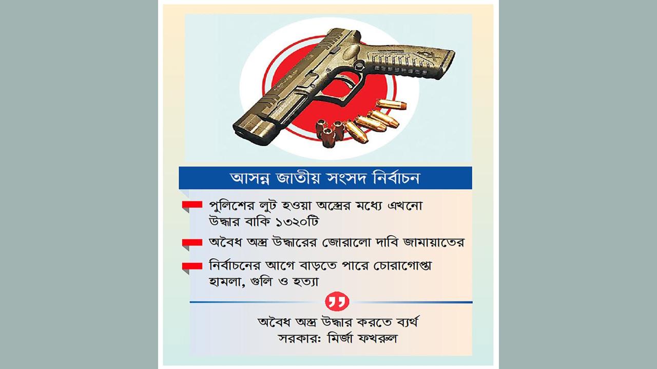 নিরাপত্তা বিশ্লেষকদের মতে, সবচেয়ে বড় উদ্বেগের জায়গা হচ্ছে অতীতে লুট হওয়া পুলিশের বিপুল পরিমাণ অস্ত্র এখনো পুরোপুরি উদ্ধার না হওয়া। পুলিশের তথ্য অনুযায়ী, বিভিন্ন সহিংস ঘটনায় লুট হওয়া পাঁচ হাজারের বেশি অস্ত্রের মধ্যে অধিকাংশ উদ্ধার হলেও এখনো এক হাজার ৩২০টি অস্ত্র উদ্ধার বাকি রয়েছে। এসব অস্ত্র যদি অপরাধী চক্রের হাতে সক্রিয় থাকে, তাহলে নির্বাচনকালীন সহিংসতার মাত্রা বহুগুণে বাড়তে পারে।