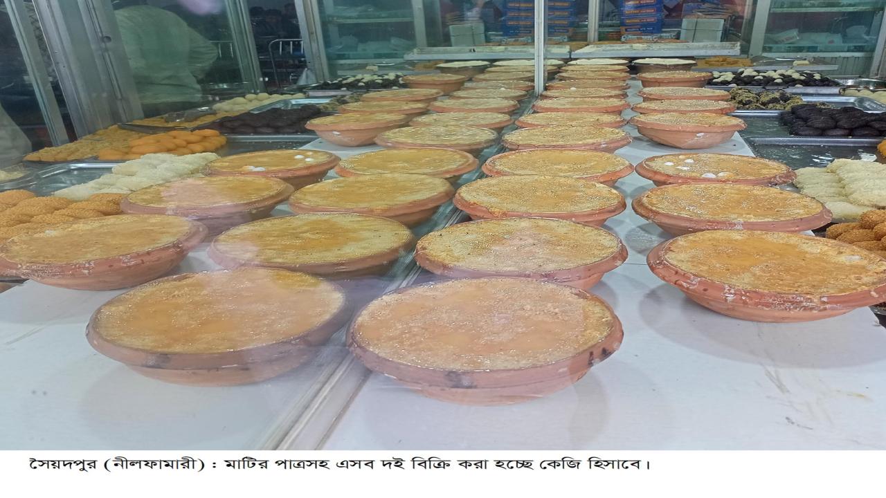 নীলফামারীর সৈয়দপুরে দই ও মিষ্টি বিক্রিতে ওজন কম দিয়ে প্রতারণার অভিযোগ উঠেছে। মাটির বাটিসহ ৫০০ থেকে ৭০০ গ্রাম দইকে এক কেজি হিসেবে বিক্রি করা হচ্ছে। ফলে দইয়ের দামের সঙ্গে ক্রেতাদের বাটির মূল্যও পরিশোধ করতে হচ্ছে।