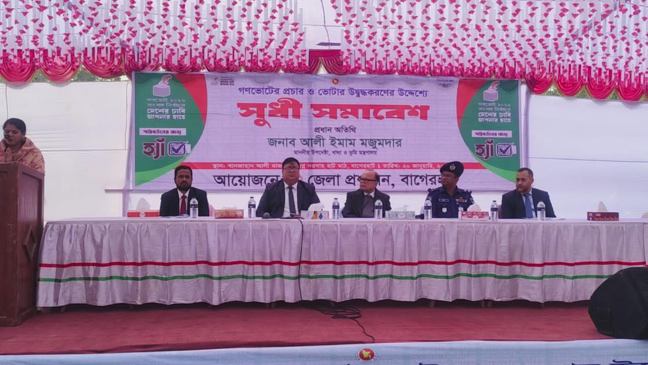 মঙ্গলবার (২০ জানুয়ারি) দুপুর ১২ টায় জেলা প্রশাসনের আয়োজনে খান জাহান আলী (রহ.) মাজার সংলগ্ন দরগাহ হাট মাঠে ‘হ্যাঁ’ গণভোটের প্রচার ও ভোটার উদ্বুদ্ধকরণ সুধী সমাবেশে প্রধান অতিথির বক্তব্যে তিনি এ কথা বলেন। তিনি জনগণকে ভোটকেন্দ্রে গিয়ে ভোটাধিকার প্রয়োগের আহ্বান জানান।