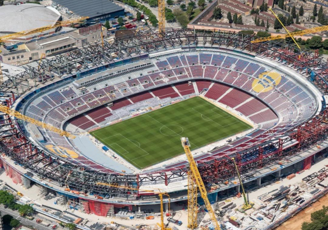 বার্সেলোনা থেকে ২০২৩–২০২৬ সময়ের ‘Espai Barça’ প্রকল্পের অংশ হিসেবে Camp Nou পুনর্নির্মাণ শুরু হয় ২০২৩ সালের জুনে, যা শুরুতে ডিসেম্বরে সমাপ্ত হওয়ার কথা ছিল, কিন্তু তা পিছিয়ে সেপ্টেম্বর ২০২৫–এ সরাসরি এবং ২০২৬–এর গ্রীষ্মে সম্পূর্ণ হওয়ার সম্ভাবনা দেখা যাচ্ছে reuters.com+15padmagazine.co.uk+15fcbarcelonanoticias.com+15thisismoney.co.uk+3eurofootball.news+3reddit.com+3 ।